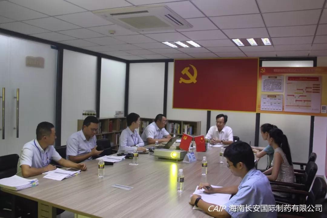 7月26日下午,高新區(qū)黨工委郭志偉副書記一行三人,蒞臨海南長安國際制藥有限公司黨支部調(diào)研指導(dǎo)黨建學(xué)習(xí)情況,長安制藥黨支部汪立冬書記協(xié)同長安制藥黨支部和高新區(qū)藥谷一期(國科園)流動黨支部各黨員、預(yù)備黨員、積極分子出席本次會議。