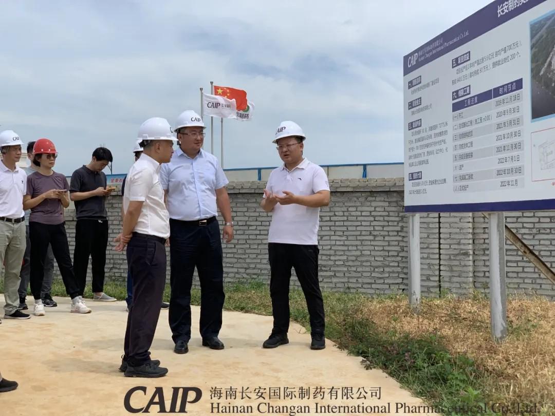 6月25日,??谑惺形睍?、市長丁暉等一行領導蒞臨長安制藥美安科技新城新廠建設項目考察調研。??谑形N⒏笔虚L鞠磊,市發(fā)改委、住建局、自規(guī)局、統(tǒng)計局相關單位領導及高新區(qū)管委會主任劉立武等一同參加調研活動,海南長安制藥總經理汪立冬陪同調研。