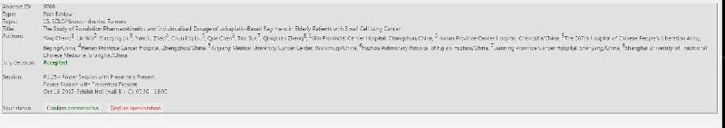 世界肺癌大會(huì)(WCLC)是世界上最大的致力于肺癌和其他胸部惡性腫瘤的會(huì)議,有來自100多個(gè)國家的超過7,000名與會(huì)者代表,共同討論胸部惡性腫瘤研究的最新進(jìn)展。2017年世界肺癌大會(huì)將于10月15日在日本橫濱召開,屆時(shí)程穎院長會(huì)在壁報(bào)現(xiàn)場向世界各國與會(huì)專家介紹洛鉑研究結(jié)果。