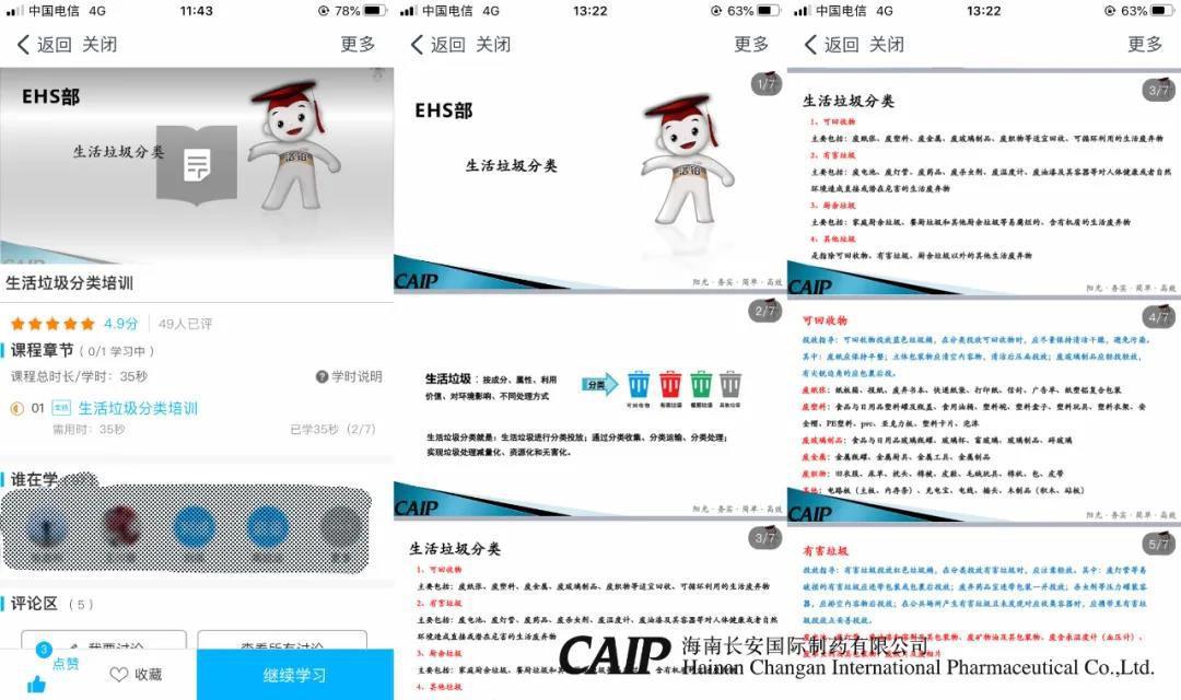 當天,長安制藥還通過網上益佰云學院對全體員工進行了“生活垃圾分類”的在線培訓,確保廣泛深入、全面系統(tǒng)的對員工了解并熟知生活垃圾四分類原則、垃圾投放要求、垃圾收運過程、全公司分類垃圾桶設置等。